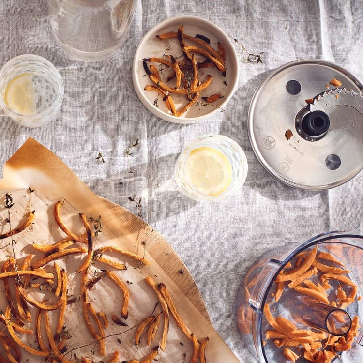 Homemade fries have never been easier. This disc slices perfectly shaped veggie sticks in seconds. Plus, when you make them at home, you can try healthier preparation methods; try making your own baked French fries out of potatoes, sweet potatoes, or other root veggies. They’re sure to become a family favorite.