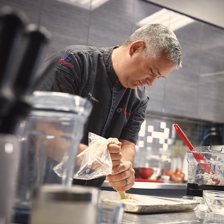 « Que vous exploitiez une table d'hôte gastronomique ou une chaîne de cafés, vos clients s'attendent à ce que leur commande soit identique à chacune de leurs visites Le appareils Vitamix Commercial vous permet d'obtenir cette texture et cette consistance parfaite, afin que tout ait l'apparence et le goût qu'il se doit. »
