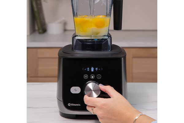 Place the eggs and sugar into the Vitamix container and secure the lid.