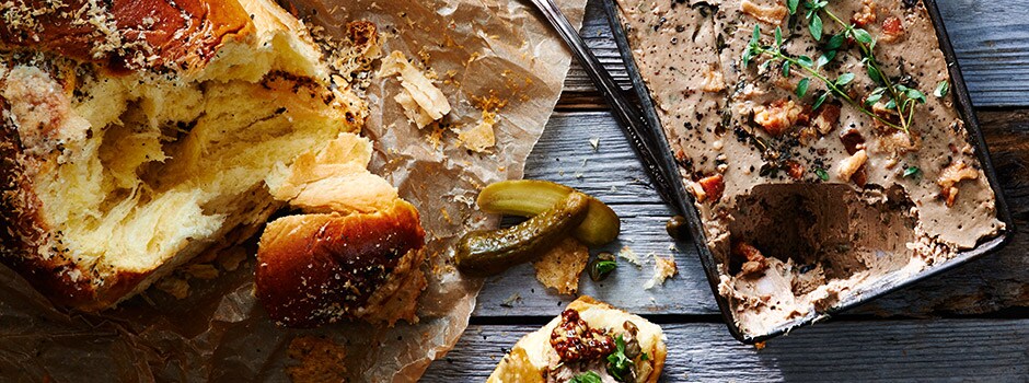 This pork liver pate offers a layered flavor experience, with sweet balsamic vinegar, savory caramel iced shallots, and pork liver whipped into a velvety-smooth texture.