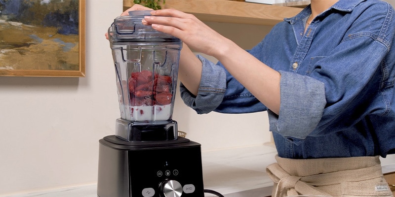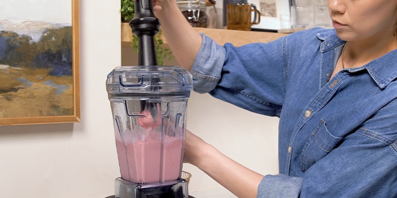 Run the Frozen Dessert Program, or start on the lowest speed and quickly increase to the highest speed. Blend for 40 to 50 seconds, using the tamper to push ingredients toward the blades.