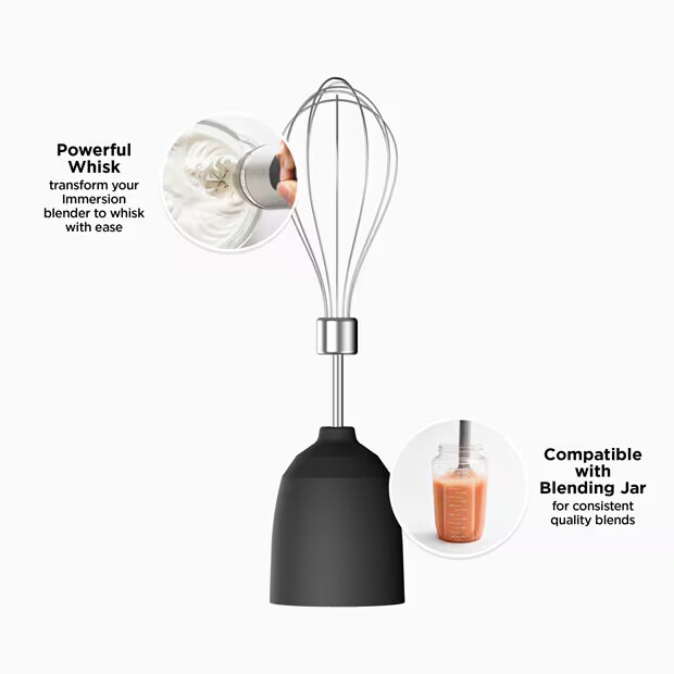 Give your forearm a break and take your Vitamix Immersion Blender for a spin. This attachment turns your Immersion blender in a powerful whisk, allowing you to whip aquafaba, batters, meringues, eggs, cream, and more in minutes. It’s perfect for any amount of ingredients, from small to large batches. You’ll be amazed by how quickly and easily homemade meringue or whipped cream come together when you use the whisk attachment.