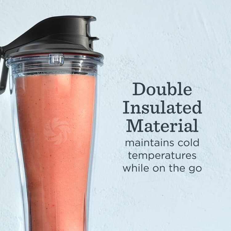 The Personal Cup Adapter makes it easy to blend right in the container and take it with you. The 20-ounce containers are top-rack dishwasher safe, leak-proof, and made of BPA-free double insulated Eastman Tritan to maintain cold temperatures while on the go.